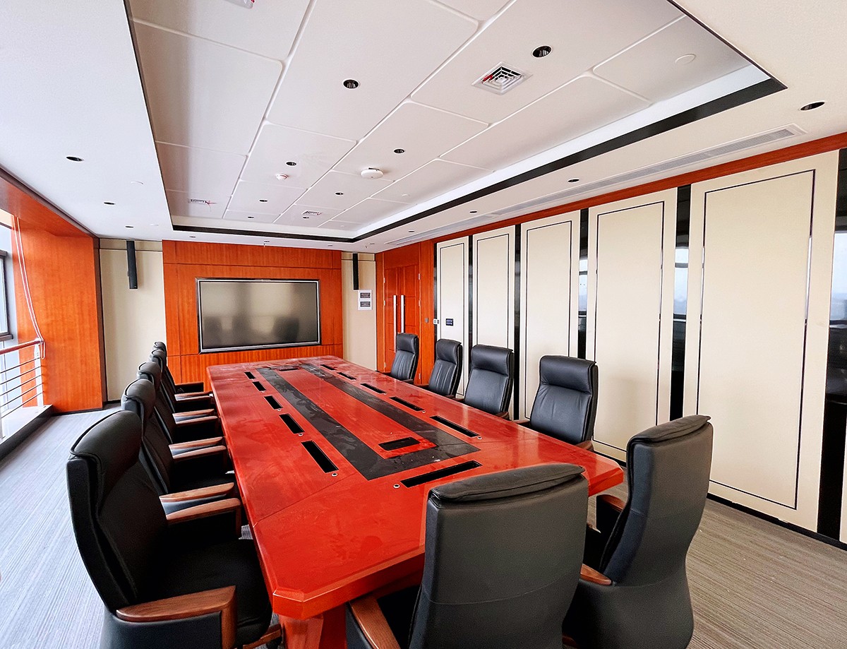 十七冶马鞍山总部技术中心大厦项目,13、 14、18、19、1、3层公区、走廊报告厅、 会议室接待室等,分别运用了公司的墙板, 采用包覆板成品安装,布艺硬包、皮革硬 包,结合金属收口条,整体效果现代,美 观大气。
